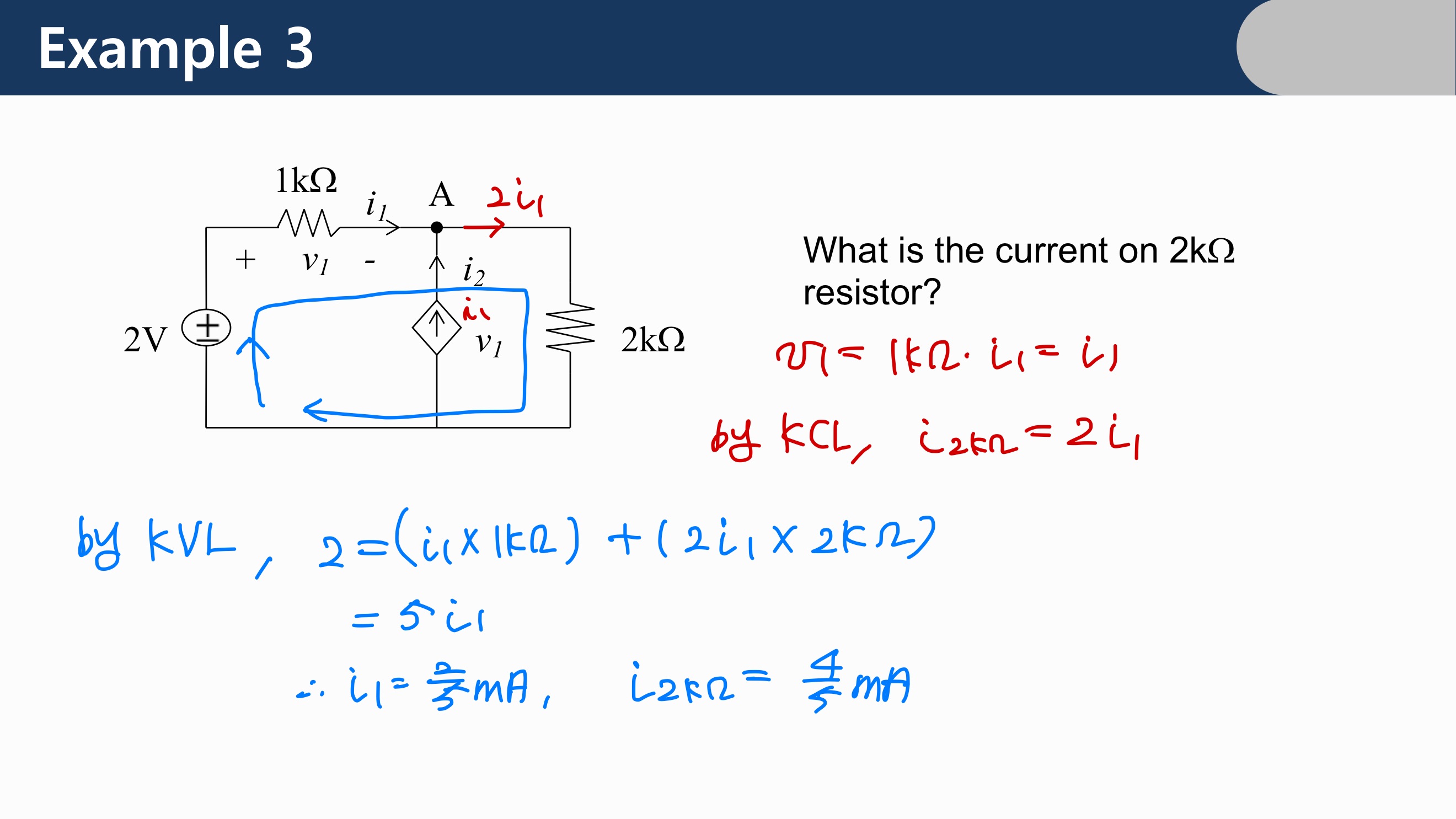 1) KCL에 의해 2kΩ으로 흘러가는 전류는 2i1