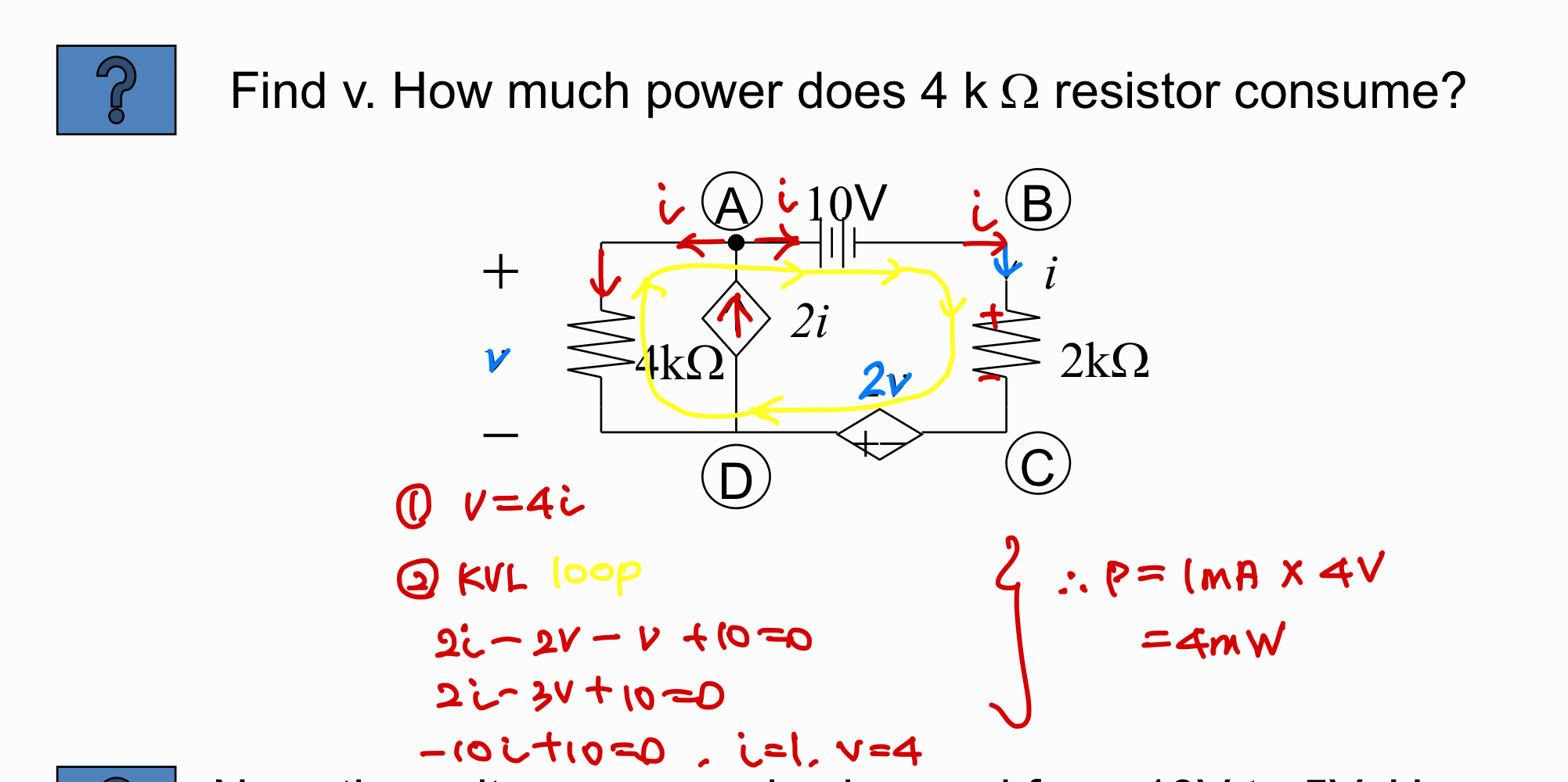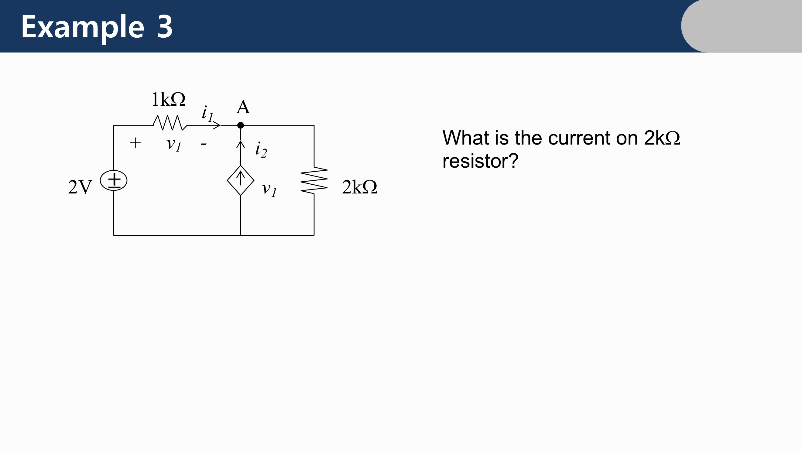 일단 종속 전원이 있을 때는 거기에 표시된 요소의 관계식을 우선 구해두는게 좋은 것 같다. 지금 문제 상황에서는 v1이 주어졌으니 v1 = 1kΩ x i1 = i1, 즉 v1 = i1 이라는 관계식을 얻고 가는 것이다.