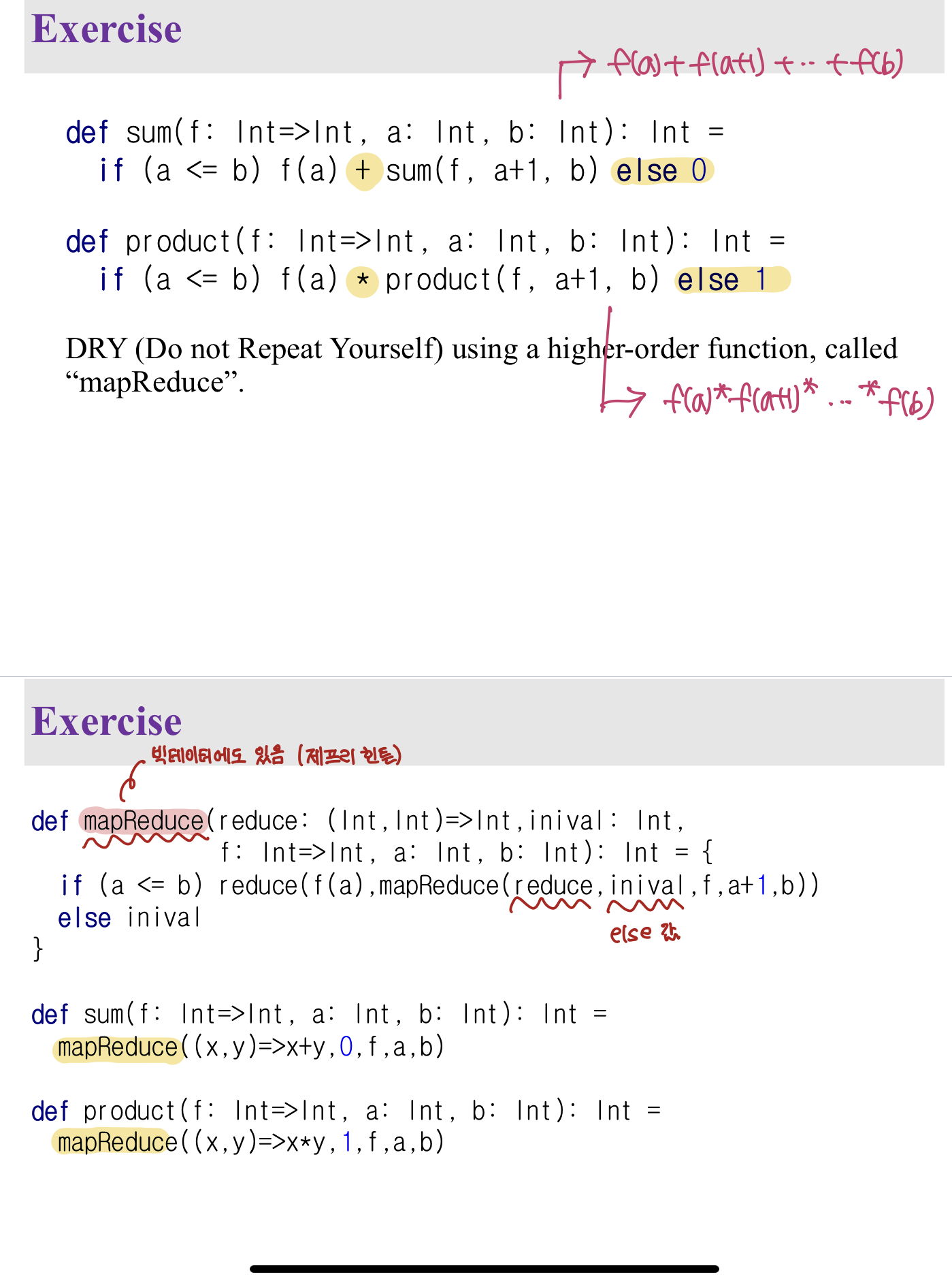 이렇게 반복되는 패턴이 보이면 하나의 함수로 묶어버리는 것이 하이어 오더 펑션이다.